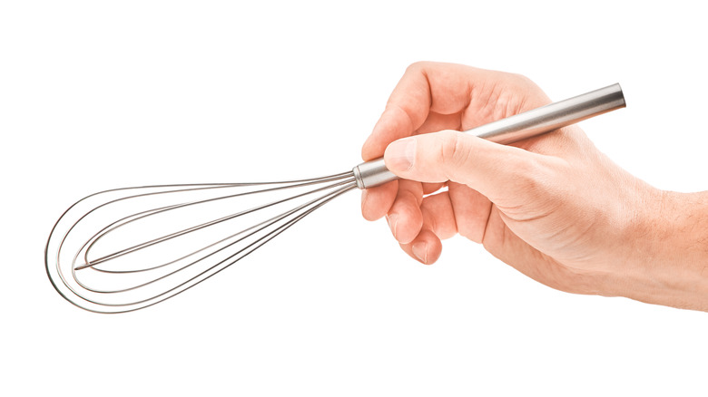 Perfectly formed peaks, however, do not require an electric mixer, and it's possible to achieve the same result with a hand-held whisk. Not all whisks have the same function, though, and just like with your bowl, the key to obtaining ideal whipped egg whites is to choose the correct utensil. The best whisk for beating egg whites, from foam to stiff peaks, is a balloon whisk. Since air is the key to obtaining volume, both the curved wires and tapered head make this whisk ideal for maximizing the air circulating your bowl and egg whites. When it comes to choosing a particular balloon whisk, opt for one with sturdy wires that are built into the handle, as these are far less likely to warp. A lightweight handle may also help to ease any muscle ache that often accompanies vigorous whipping.