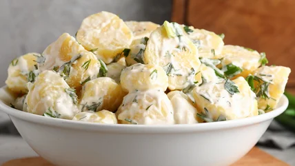 Potato salad is the cool, creamy side dish that always has a spot on the table. Many people have strong feelings about this staple dish — you may prefer it as an accompaniment for fried chicken over barbecued meat, or point blank refuse to use eggs. But there's one thing that should be easy to agree on: Adding tzatziki will upgrade your potato salad with Mediterranean flair.