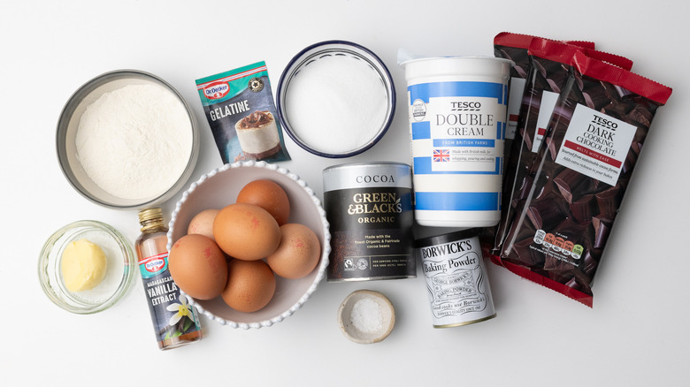 Gather the ingredients for this dreamy decadent chocolate mousse cake recipe