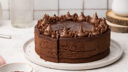 Don't settle for plain old chocolate cake when you could have this dreamy decadent chocolate cake, richly adorned with a chocolate mousse and ganache.