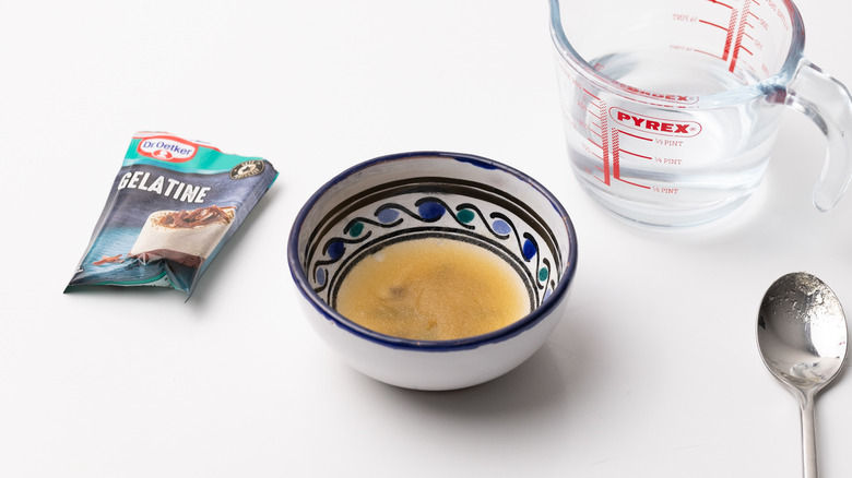 - Mix the gelatin powder with 4 teaspoons water, and set aside 5 minutes.