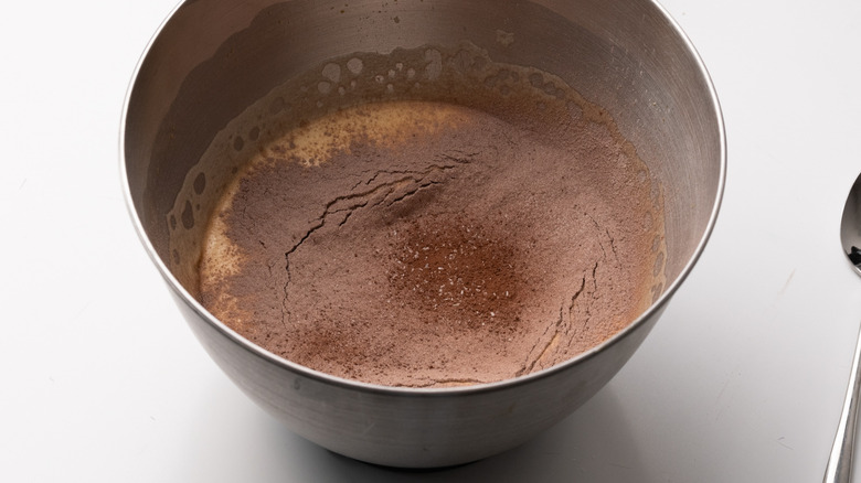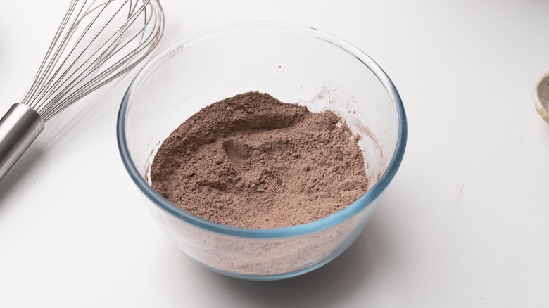 - In a separate bowl, whisk together the flour, cocoa powder, baking powder, and salt.