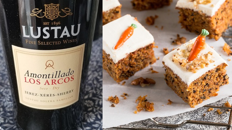A dry-style sherry, like an amontillado from Lustau, can also pair with desserts if the dish's sweetness shows restraint, like an earthy carrot cake. The sherry's production begins by aging the fortified wine under a layer of yeast in a barrel known as flor, lending a note of freshly baked bread to the sherry. It then transitions to an oxidized sherry, exposing the aging wine to oxygen in the barrel and giving the sherry a well-rounded texture.