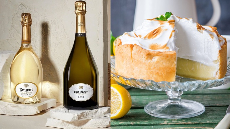 A zesty, citrusy lemon pie with a thick meringue top is perfect with a glass of Blanc de Blancs Brut Champagne. While the wine is considered dry, the governing body of Champagne, the Union des Maisons des Champagne, defines the Brut style as containing some residual sugar, up to 12 grams per liter, enhancing the wine's orchard, citrus, and melon notes. The 100% Chardonnay Blanc de Blancs wine's fruity citrus and orchard fruit flavors will enhance the lemon meringue pie's fresh fruity citrus flavors.