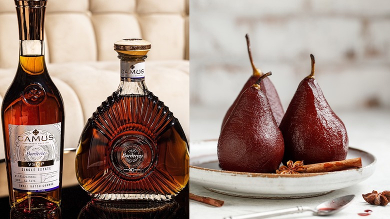 Red wine-poached pears are one of the most elegant desserts to enjoy, with a naturally fruity sweetness from the pears and wine that isn't overpoweringly sugary and a touch of spice from the inclusion of cinnamon sticks or star anise in the poaching liquid. As there is restraint in the dessert's sweetness, the pears are a heavenly match with an aged cognac, highlighting the dish's fruit and spice notes.