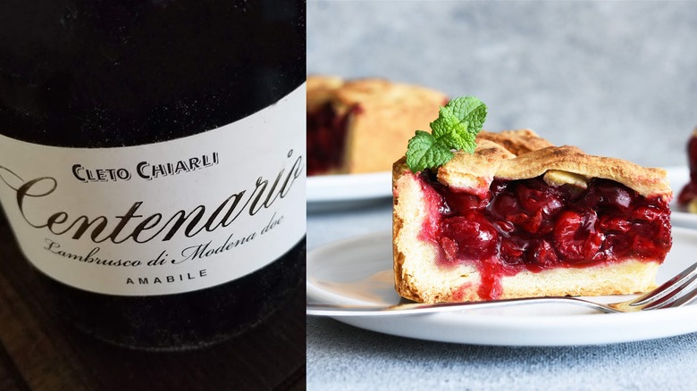There are various types of lambrusco grape varieties. To pair with sweet desserts, we recommend a lambrusco grasparossa di castelvetro or a lambrusco salamino di santa croce, crafted into an off-dry or sweet style, like Cleto Chiarli Centenario Grasparossa di Castelvetro Amible. The sparkling wine balances the pie's sweetness with an inky purple color, aromas of violets, wild berries, red cherries, and a refreshing effervescence.