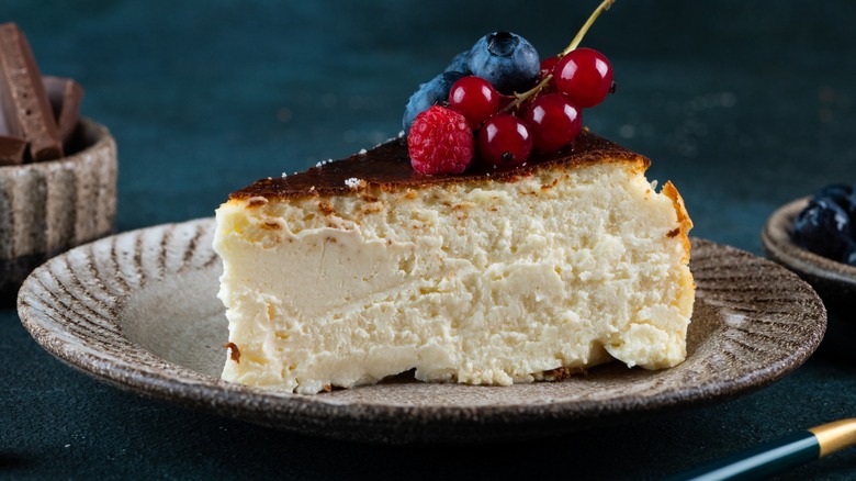 Except for bread pudding and tres leches, soggy cake is about as unacceptable as dry cake is. While water baths will ensure a moist cake, they also pose the risk of seeping into the cake batter, causing a too-wet bottom. Luckily, there are a few measures you can take to prevent seepage and spillage. The first and most obvious safeguard is not adding too much water to the roasting pan; all you need is an inch of water, whether you're using tin foil or placing the water bath on the bottom rack.