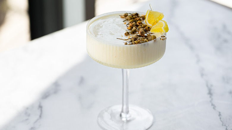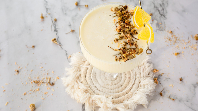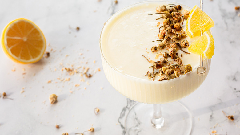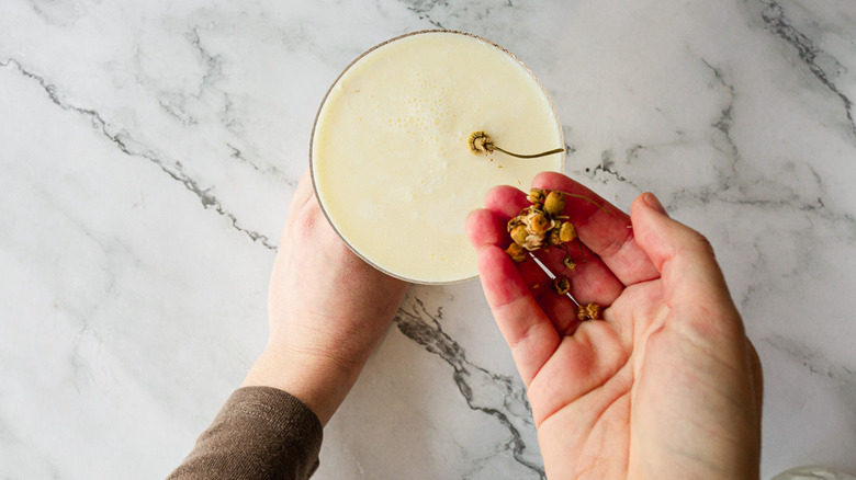 - 1 teaspoon loose chamomile flowers, plus more for garnish