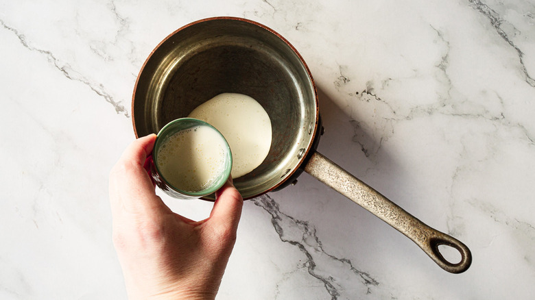 - In a small saucepan, gently heat the heavy cream over low heat until warm but not boiling.