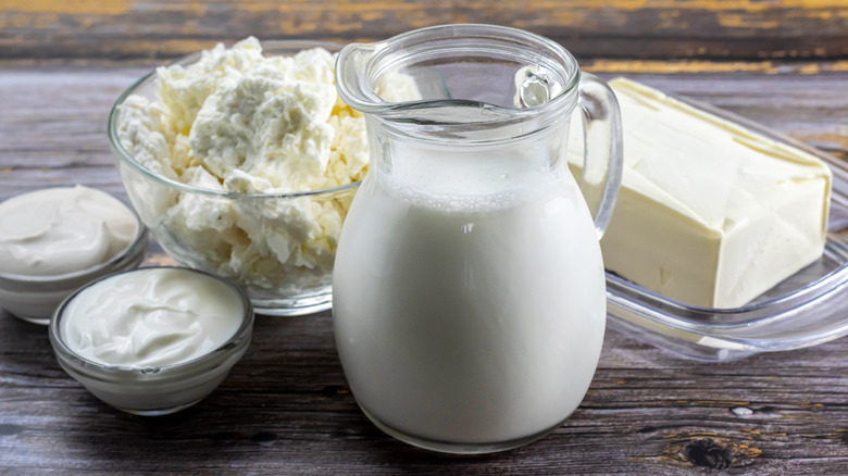 Everyone has probably put in cold butter from the fridge straight into mashed potatoes, getting frustrated when that last glob doesn't quite melt. For best results, warm up your dairy ahead of time. For butter, this can simply mean allowing it to reach room temperature. For milk, creams, and things like cream cheese, heat them on the stove. They don't have to reach boiling point but you want them to be warm. This hack ensures that you don't accidentally cool down your mashed potatoes. Refrigerated cold mashed potatoes are delicious, but reducing the temperature of the taters during the mixing process can make them stiff and ruin the consistency.