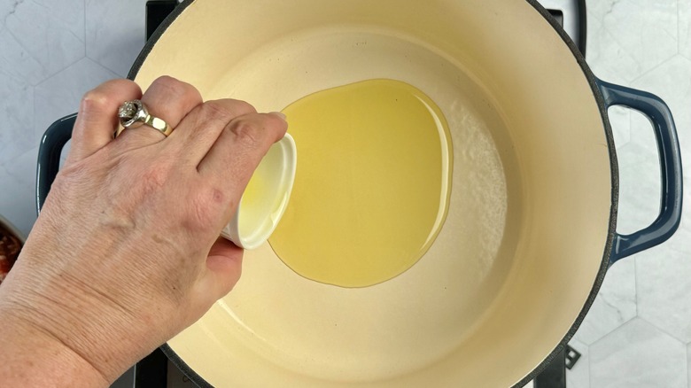 - Heat oil in Dutch oven over medium-high heat.