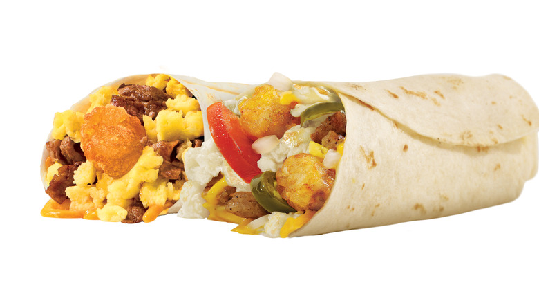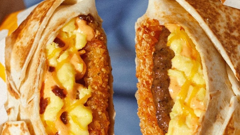 Breakfast burritos, quesadillas, and Crunchwraps are pretty much the only options for the morning crowd at Taco Bell. Although the restaurant doesn't have much variety, the Crunchwraps appears to be a hit with customers. The fast food chain offers Crunchwraps that come layered in a toasted tortilla with eggs, cheese, a hash brown, creamy jalapeño sauce, and a choice of bacon or sausage. There is also the breakfast California Crunchwrap, which features guacamole and tomatoes along with the familiar ingredients.