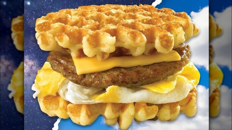 It's hard to criticize any restaurant that offers breakfast all day, but White Castle offers limited menu items that are reminiscent of its signature sliders rather than leaving customers with memorable a breakfast. However, the chain manages to bring some variety into the lineup thanks to its line of Belgian Waffle sandwiches. The waffles are imported from Brussels, Belgium, and have remained a staple on the breakfast menu since its 2014 launch. The sandwich features cracked eggs topped with a choice of cheese, sausage, or bacon. The sandwich lineup also offers a crispy chicken breast topped with bacon between two fluffy Belgian waffles.