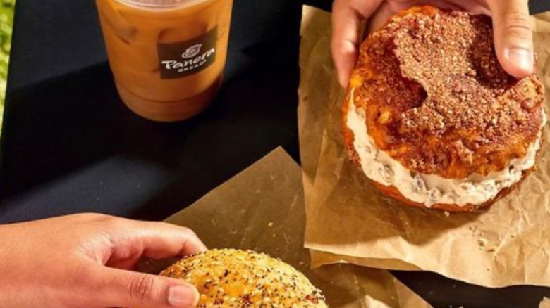 Panera Bread, endearingly called Panera by loyal customers, offers an impressive mixture of savory and light breakfast options. The fast food chain serves an upgraded version of the typical breakfast sandwich by nixing the English muffin for a ciabatta or brioche roll — the carbs at this chain are enough to rank it above most other breakfast menus on this list. The breakfast menu also acknowledges bagel lovers who can choose between ham, egg, and white cheddar cheese on a cinnamon crunch bagel, or sausage, egg, and American cheese on an asiago bagel. Those looking for a bagel sandwich with fewer calories may consider the avocado, egg white, spinach, and cheese on a multigrain bagel flat. The range of options for different diets and tastes shoots this option toward the top of our ranking.