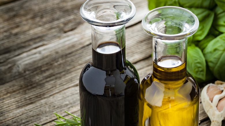 Instead of whisking a dressing separately, Tasting Table's balsamic chicken pasta recipe recommends measuring and pouring the oil and vinegar directly into your pasta salad with seasonings and basil, tossing to combine. If you want a stronger balsamic flavor, you can marinate any vegetables or proteins you plan on adding in balsamic vinegar, oil, and garlic. Balsamic marinated broccoli, carrots, onions, and green beans would all taste delicious in a pasta salad.