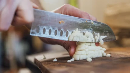 The wet knife hack involves dipping the blade of your knife into water with each cut. There's a little science behind the technique –- water helps to keep the volatile gas released by the onion as it's cut from becoming airborne. When that gas hits the water of your eye, it becomes a weak acid, causing your eyes to tear up and rinse away the irritant. But repeatedly stopping your chop to wet the knife is not only inefficient, it also prolongs the time you are standing over a pile of cut onions and makes the whole process slippery and less safe. There are far better recommendations you should know about.