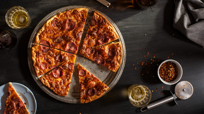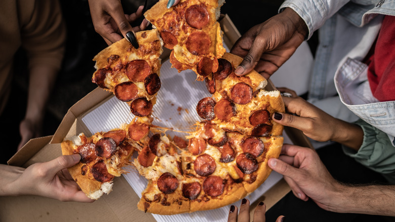 Nowadays, roughly three billion pizzas are consumed in the U.S. every year (about 46 slices per person). And while there are plenty of gourmet toppings to upgrade your pizza, pepperoni is still the No. 1 favorite in America, with a whopping 64% of respondents in a 2021 YouGov poll naming it as their go-to. Still, pepperoni has yet to catch on with quite as much fervor in present-day Italy. Aurally, "pepperoni" sounds like "peperoni," the Italian word for bell peppers — not meat at all. In Italy, if pepperoni is used to top pizzas, it's used sparingly, taking a backseat to high-quality sauce and crust. Ordering "pizza alla diavola" en Italia is your closest bet to replicating the topping you'll find (everywhere) in America.