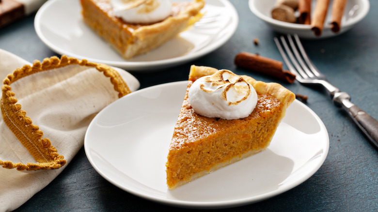 You could place the pie under the broiler for a minute but you might run the risk of a melted, runny fluff. A torch allows more flexibility since you can heat a designated spot versus the whole thing at once. Apply the same technique as a s'mores pie instead of marshmallows. Instead of spreading it on top of a pie, you can mix it directly into the batter. Adding it to chocolate pie can give it a mousse-like texture. This is a great hack for pies that call for marshmallows since you don't have to place them on the pie individually.