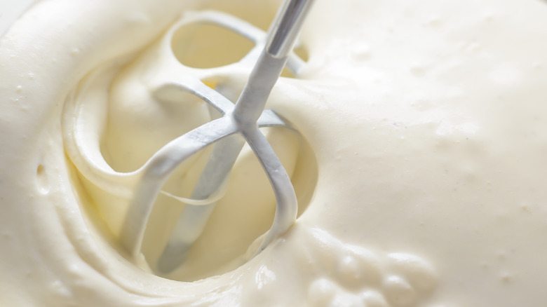 Heavy cream may be just one type of cream, but it's an important one that distinguishes itself with a high-fat composition. Given this defining texture, the versatile, creamy dairy product applies to both sweet and savory recipes. Think scrambled eggs, puddings, or cheesecakes that taste best at their creamiest. For recipes like the latter, you may want to swap out your tried-and-true heavy cream for Cool Whip. The substitute works just as well and brings an additional sweetness, fluffiness, and lightness to the table. When it comes to whipped topping, more is more. Cool Whip is all about lightness, so for every cup of heavy cream, opt for about two cups of Cool Whip.