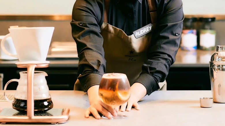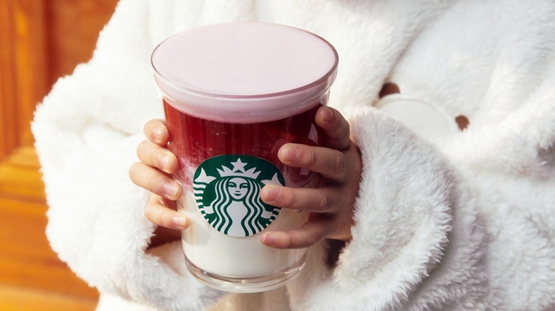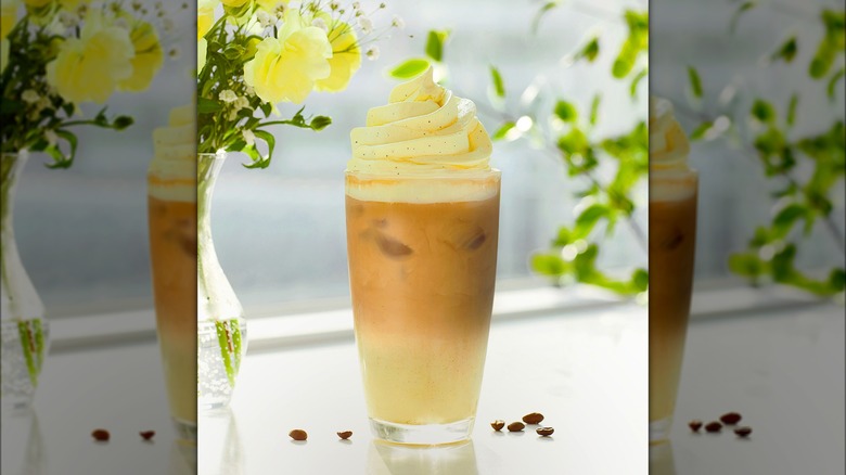 This particular beverage is infused with lavender syrup, making it a unique offering available at South Korea's Starbucks Reserve locations, where it is prepared with the signature Reserve espresso. Although promotional imagery might depict the drink with a strikingly bright purple base, the actual appearance of the beverage tends toward a more subdued pale or even grayish hue. Nonetheless, we love a lavender-infused drink, and posting Instagram photos that may not be as striking is a price we're willing to pay for such a distinctive and aromatic experience. Thankfully, we may not need to book a long flight to sample lavender drinks as leaked menus suggest that Starbucks locations in the U.S. may have lavender drinks come spring 2024.