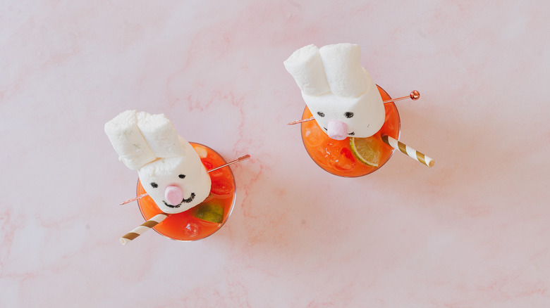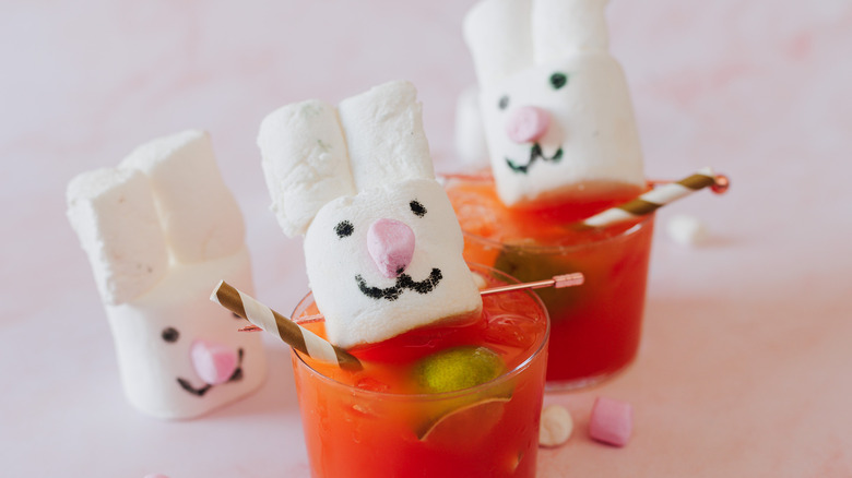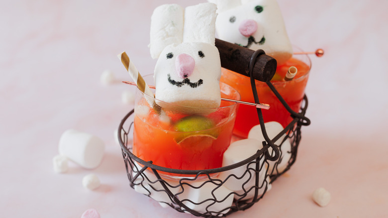 While this mocktail tastes like one of the sweetest carrot recipes you've ever had, the true charm of this Easter mocktail lies in its playful presentation. To put a fun spin on this seasonal mocktail, make a handmade marshmallow bunny that will sit perched atop the glass. According to Ksenia Prints from At the Immigrant's Table, this creative garnish makes every adult who drinks it feel like a child and every child who does squeal with delight.