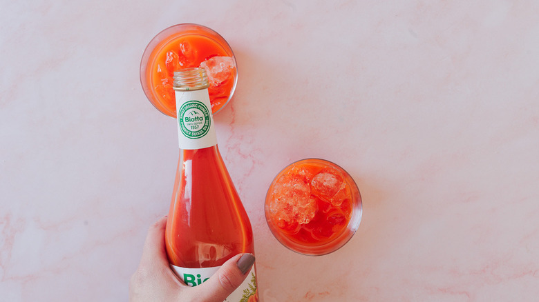 - Pour the chilled carrot juice over the ice.