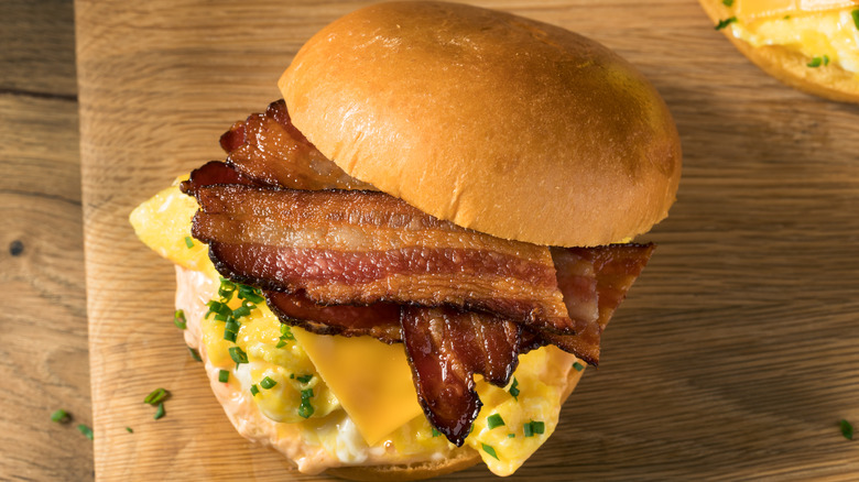 If you're looking to try one of America's best breakfast sandwiches, but don't want to leave the comfort of your own home, this is the version you'll want to make. To start, you'll need, of course, brioche buns — though you can also make your own brioche with just a few ingredients. Of course, a great sandwich is only as great as its filling and the bread is just half of the equation.