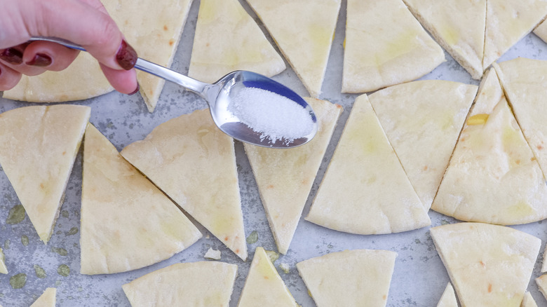 - Sprinkle the triangles with ½ teaspoon of salt.