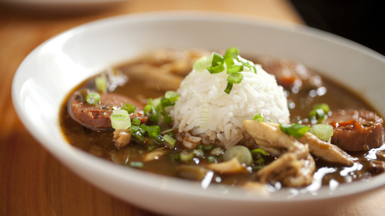 Gumbo is one of the most quintessential staple foods of southeastern Louisiana. Strongly rooted in Creole and Cajun cuisine, this thick and dark soup is a hearty, widely varied, and extremely loved meal in the colder months of the year down south. Gumbo has evolved over the years to contain a variety of ingredients like meat, seafood, vegetables, and thickeners. Because no two gumbos are exactly the same, it's often difficult — and largely debatable — to say exactly what makes a perfect gumbo or a perfect gumbo-making technique.