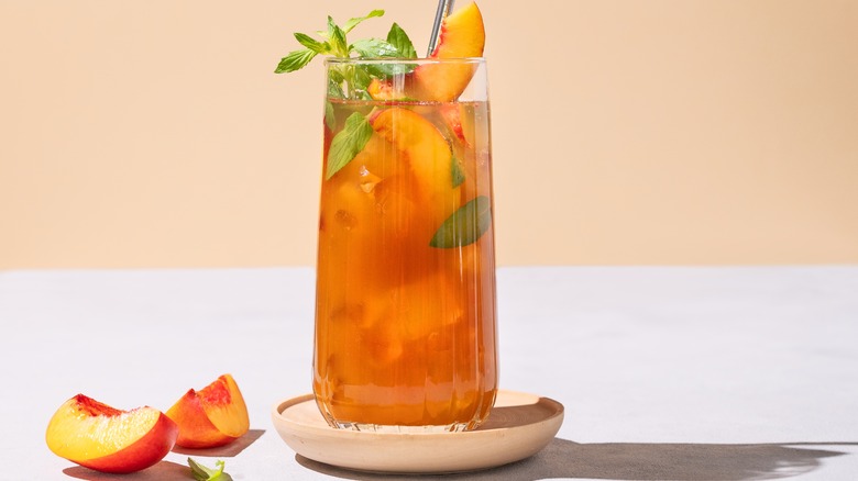First things first, round up a tall glass, some ice, and your beverage makings. If you can find them, fresh peach slices are a tasty addition. Fill your glass with ice and pour in two parts Irish whiskey, half part peach schnapps, and a splash of fresh orange juice. Top the glass with ginger ale — about four to five parts, or more or less to your taste — and finish it off with a lime slice or spring of mint for garnish. Cheers!