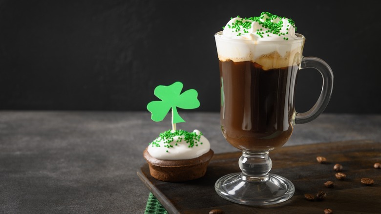 Many decades later, Irish coffee remains a well-loved beverage. There's no better occasion to whip one up than on St. Paddy's Day. The base drink includes black coffee mixed with Irish whiskey and a spoonful of brown sugar. Stir in a splash of Bailey's to make it creamy. If you're feeling extra crafty, make some Bailey's infused whipped cream to top your Irish coffee with. The cozy drink is a perfect nightcap to finish your day of St. Patrick's Day fun.