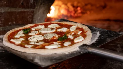 Another tip to prevent your pizza from sticking to the peel is to make sure it's clean before placing your dough on it and dusting it with finely textured semolina. Once your pie is on top, give the peel a little shake to see if the pizza can move freely across the surface without sticking. You could also try using less sauce to prevent the risk of your dough absorbing too much moisture and sticking to the peel, or even add it over the cheese, like a Detroit-style pizza.