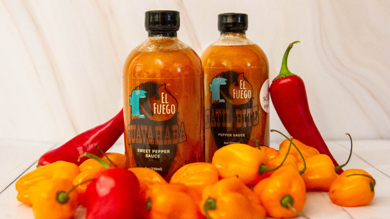 Case in point: El Fuego Datil Bite sauce. It's unmistakably a datil sauce, and the sweet fruity flavor of the pepper is the first thing you notice. But this sauce also gets a boost from scorpion pepper, so while it starts with datil, it ends with a smoldering scorpion sting. El Fuego similarly showcases Serrano, Fresno, and Reaper peppers in individual sauces, and the company also has several fruit-based sauces that incorporate freshly squeezed juices, like their Guavahaba, Watermelon 'Peño, and Tropical Hab options.