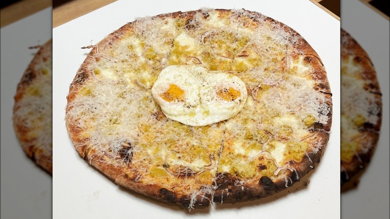 "These pizzas naturally lend themselves to people wanting them in the morning. We do a breakfast pizza that has a cooked potato, that's grated and put on top of the dough and has Parmesan and has a fried egg," Shook explained during an exclusive interview with Tasting Table. It's for this reason that the chefs have several different pizzas on their menu. There's the classic that comes with cheese and your choice of meat, there's one that's served cold, but there are also two that come with potatoes and fried eggs — two ingredients that scream breakfast. For these two pizzas, the chefs do something unusual: They cook the egg separately.