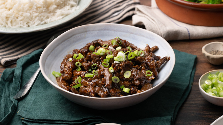 Then there are the easier methods to add a hint of chili to the beef that will still provide heat. Grab that jar of chili oil from the cabinet and use it to give the meat marinade a kick of heat, or spoon it directly on top of the beef after it's plated. Sriracha is an even easier way to add the flavor and heat of chilis to the dish — and you can squirt as much as your tastebuds can handle. Use the bottle of sriracha already in your kitchen or make homemade sriracha. Really any chili ingredient you choose for spicy sesame beef will make it stand out for anyone who appreciates a meal packed with heat.