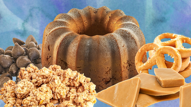 Now, if we're considering ingredients that are both salty and crunchy, pretzels are the obvious go-to. On their own, pretzels may not be the most exciting snack out there, seeing as they have a fairly neutral flavor profile. When it comes to a cake, however, pretzels are a perfect inclusion because of that neutral flavor profile — they'll add a nice crunch and a hit of saltiness without overshadowing the sweetness of the cake.