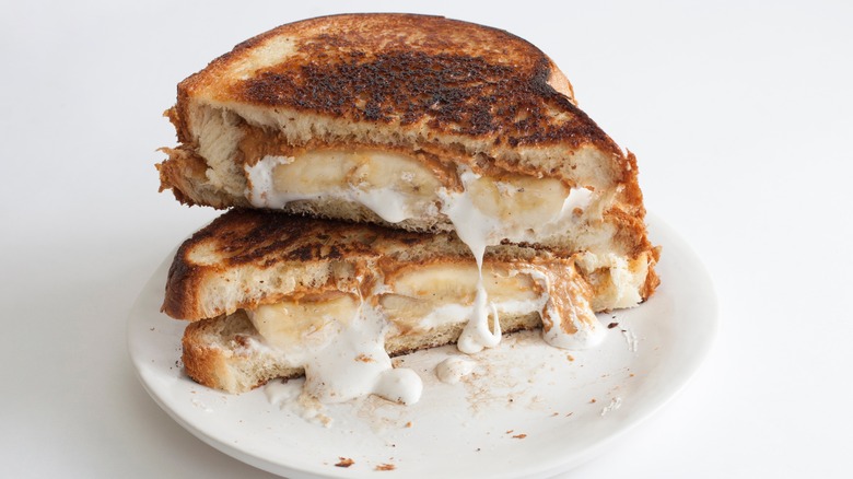Marshmallow fluff is no stranger to sandwiches. The Fluffernutter is a mix of white bread, peanut butter, and marshmallow fluff, and makes a fantastic choice for a quick sandwich. Get inspired by this tasty combination for your stuffed French toast, which makes a remarkable option reminiscent of childhood. Once heated and fried in the pan, marshmallow fluff gets nice and sticky, like a melted marshmallow would. You don't even have to use maple syrup since it has a good amount of sweetness to it.