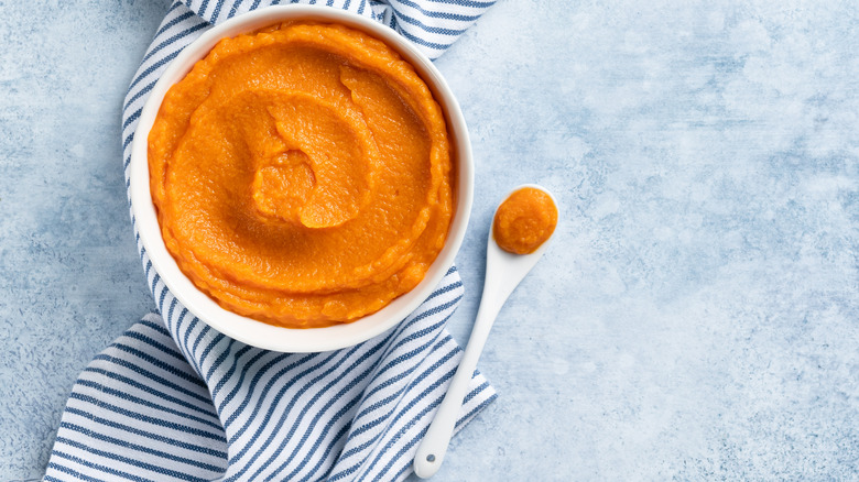 Leave the pumpkin purée alone or pair it with cream cheese or mascarpone for a creamy element that goes perfectly with challah or French bread. Make a pumpkin cheesecake of sorts with cream cheese, vanilla, sugar, and pumpkin purée. This is a great way to spice up your autumn breakfast, but you could easily eat it year-round. Top with crushed pecans, a dusting of cinnamon, and maple syrup.
