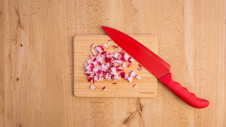 Different families have their own way to make gzik, but radishes are generally always present. Spicier radishes contrast nicely with the mild cheese, but if you're not a fan of spice, consider substituting in French Breakfast radishes or other milder varieties. Some people mix in other vegetables, such as cucumbers, too. Then, there is an allium, which is often chives, but it could also be scallions or white onions, which are sweeter than yellow onions. The last ingredient is a fresh herb like dill, but not every recipe includes herbs, so you can leave it out or use other common types of fresh herbs according to your taste.