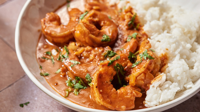 The flavorful Indian dish known as tikka masala may have mysterious origins, but most everyone can agree that it combines some sort of protein cooked in a rich sauce made with ingredients like tomato, cream, and loads of spices. Chicken is arguably one of the most popular proteins to use in the dish while paneer tikka masala offers a meat-free rendition, but shrimp tikka masala is just as flavorful and adds an oceanic flare to the entree.
