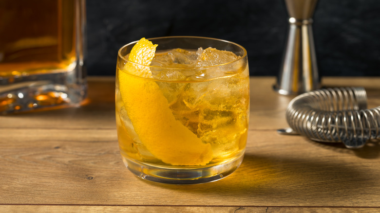 The whiskey smash is named after the way it's made, namely by crushing (i.e. smashing) lemon wedges to release that bright citrus flavor from both their juices and peels. Thanks to the citrus taste that overtakes this drink — coupled with garnishes of mint that add yet another herbal flavor — you don't need to splurge on an expensive, high-level whiskey just to get your whiskey smash at a bar.
