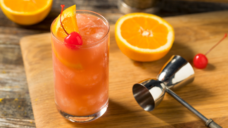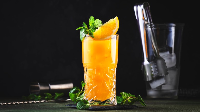 It seems fitting to include the orange juice-filled screwdriver here. According to several bartenders, the taste of an acidic fruit juice like OJ will completely disguise the strong alcohol content of the vodka. That's partly because the drink is usually only made with 2 ounces of vodka, while the rest of the tall glass is filled with orange juice. It's one of the simplest two-ingredient cocktails to make with components you can find in the fridge, making it popular both at parties and at home.