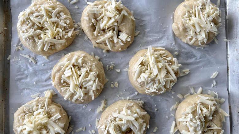 Transfer dough to a clean surface and knead in cubed cheese.