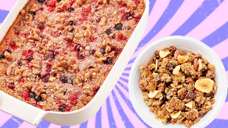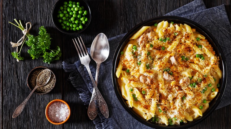 As delicious as a creamy scoop of warm casserole might be, an added pop of texture can take any homemade recipe to new heights. Whether its crispy fried onions, layers of breadcrumbs, or crushed walnuts, the inclusion of crunchy ingredients placed on top of your dishes will help any casserole sing. Thankfully, you don't need to look far to add an extra bite to tonight's dinner. Though topping your rich, cheesy, and gooey creations with handfuls of your favorite cereal might sound like a curious combination, the culinary hack only needs one taste to warrant a repeat. With a gooey center and a perfectly golden-topped surface, these cereal-topped casserole dishes may remind you of your favorite baked macaroni and cheese recipe.