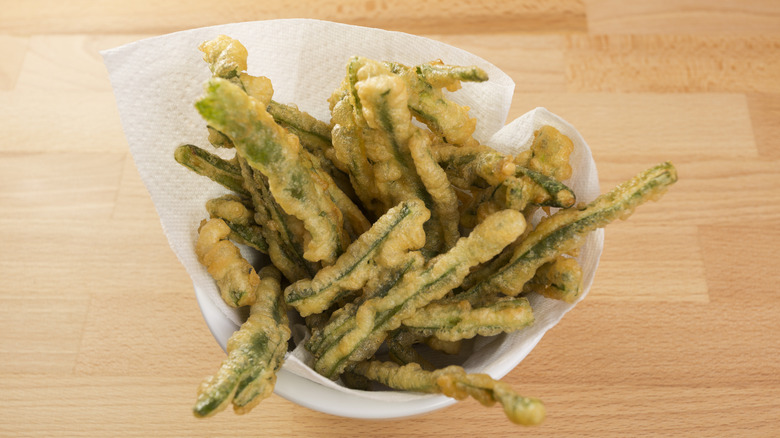 The name of this beloved dish roughly translates to "little fish from the vegetable garden." Of course, fish don't grow in the garden, so it should come as no surprise that peixinhos da horta are completely seafood-free. Instead, they're made from green beans (and sometimes other vegetables) that are coated in a light batter and fried until crispy.