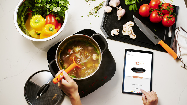 If you struggle with cooking, rather than chopping, there's another show-stopping smart device poised to make a splash. The Tramontina Guru smart induction cooktop connects to your phone and acts as a companion during the dinner-making process.
