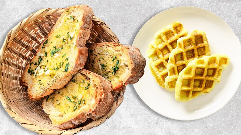 Garlic bread waffles as snacks, sides, or meals