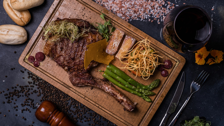There are, of course, exceptions to this menu rule, particularly steakhouses with proprietary butchering practices or rotating menus. At Bateau, a steakhouse in Seattle, the only steak-related menu description reads, "Our approach to preparing beef is about the whole animal. Steaks butchered in-house, sold by weight, and served á la carte with your choice of butter. See chalkboard for today's cuts." In cases like these, feel free to ask your server to share more information before deciding. Foodies are a passionate group of people, and even during a dinner rush, a proud, knowledgeable chef will be glad to let you know that they know their stuff when you order at your favorite steakhouse.