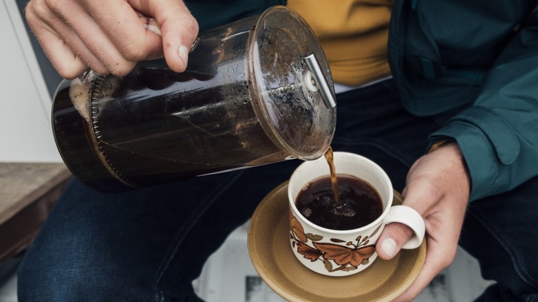 After all, the beans are the cornerstone of coffee preparation. Just like certain coffees are better suited for making espresso or using a filter method, there's a style that aligns especially well with the French press. When using this device, darker coffees are best. Since the press has metal coils and no paper filter, it'll leave more oils and grounds behind in the brewer. Longer roasted coffees — such as dark and bold roasts — have more of this flavorful oil, meaning plenty will stick around to yield the tastier, full-bodied brew that the French press is known for.