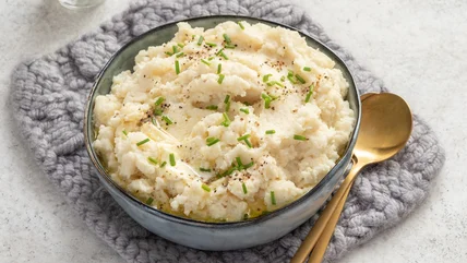 Mashed cauliflower is a popular alternative to spuds for the health factor, since the under-rated vegetable is high in nutrients and low in carbohydrates. The reinvented side dish can be just as delicious as mashed potatoes, but it's certainly not quite the same — so it might take another ingredient to achieve a similar flavor and consistency. Grated parmesan is one of those additions that should be stirred into mashed cauliflower to get the thicker consistency you might be accustomed to from potatoes.